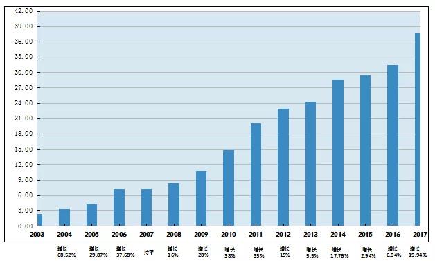 数据分析图一:《ky平台_ky平台(中国) 公司2003-2017年营业额数据图》(单位:亿元)